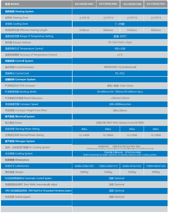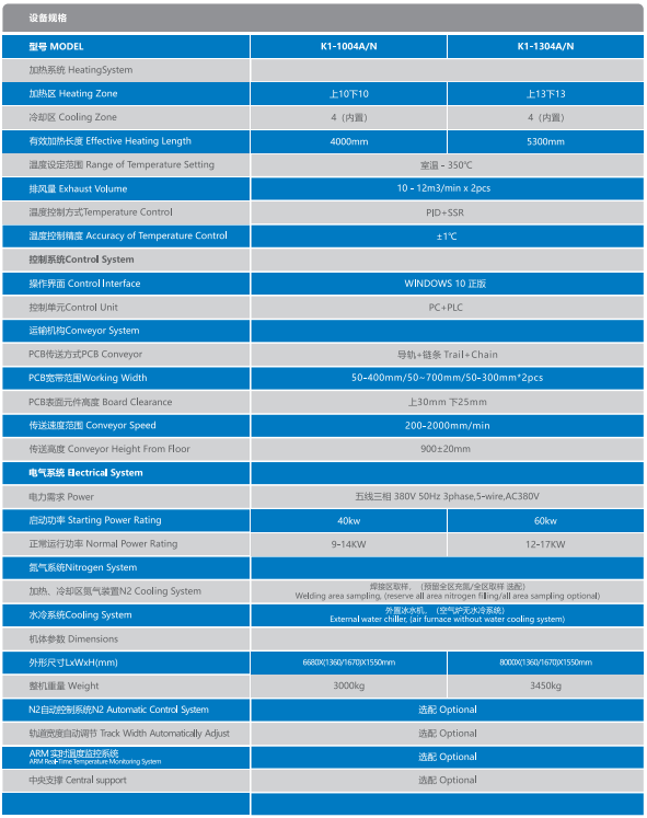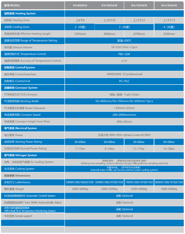 K 系列回流焊爐為您提供以下配置產品: