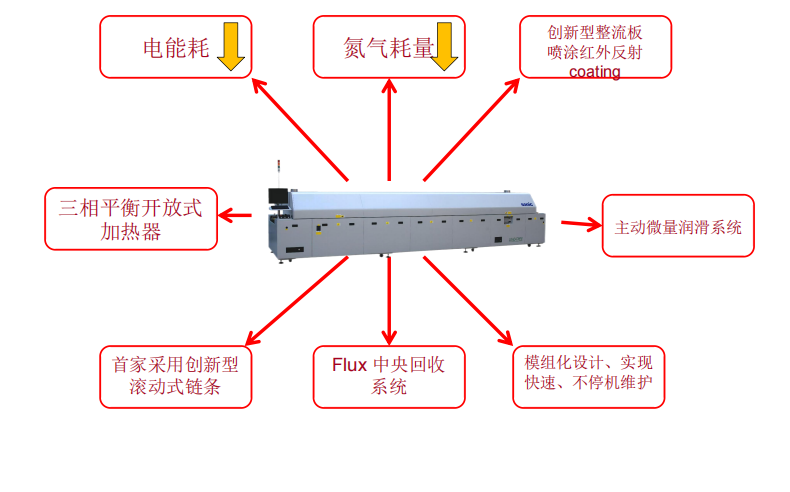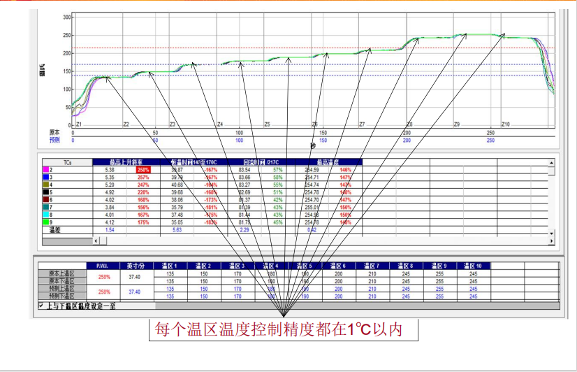 +并且加熱與熱風系統均采用三相電源供電。可靠、穩定、并極大的減少了因兩相電源不平衡問題對電網造成的沖擊。